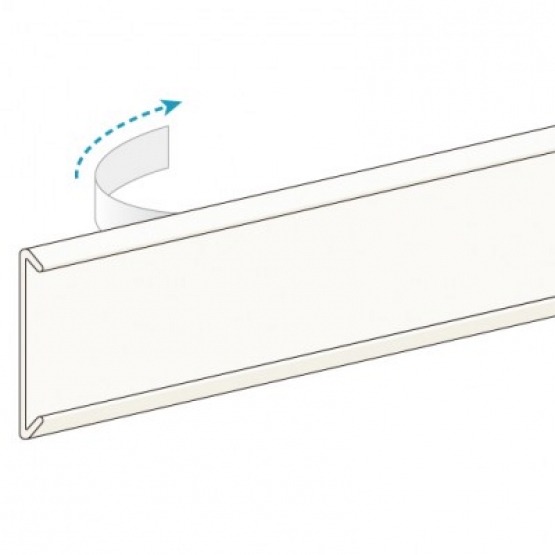 We carry ticket moulding for label holders for all kinds of shelves - metal, wood, glass and more. Most come in 4' lengths and can be fixed to the front of the shelves to provide a space to put pricing. Our most popular are the 4' white mouldings that stick to the front of a flat shelf. You can also cut these with scissors to price individual baskets or slots.